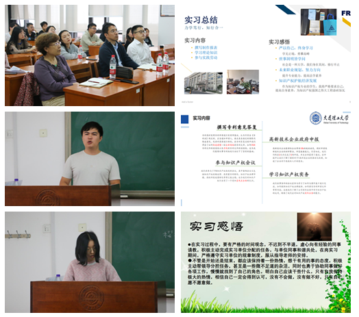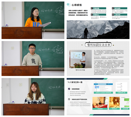 深圳市宇辉知识产权代理公司实习的李锐静同学就自身实习体验,强调英语能力对知识产权行业的重要性。沈阳之华益专利事务有限公司实习的周磊同学为公司对外知识产权培训制作PPT,同时阐述了专利代理工作与本专业的适配性。横琴国际知识产权交易中心实习的陈佳同学学习知识产权政策、运用专利检索技能、制作专利评估报告,丰富了对行业的整体认识。