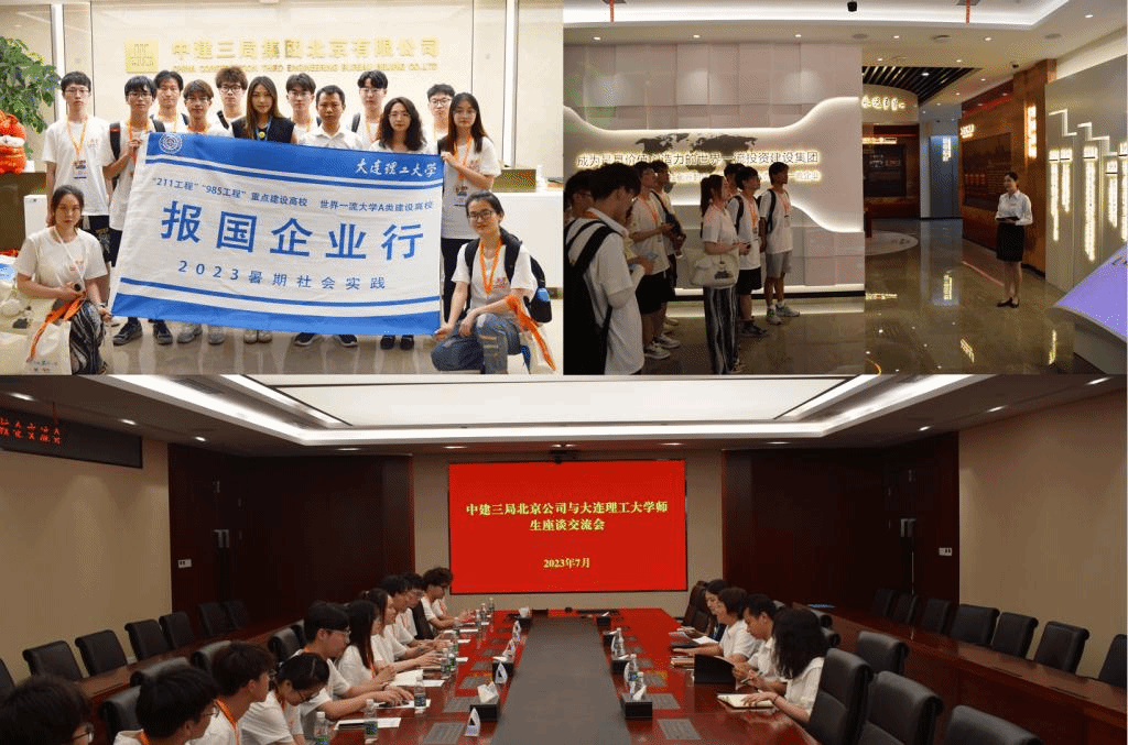 脚踏实地,勇于争先。7月17日下午,实践团队走进北京大兴区中国建筑第三工程局北京公司。从缔造“深圳速度”书写中国改革开放代名词,到创造“中国速度”十几个昼夜建成火神山、雷神山医院,实践队员通过留影壁见证了中建三局的壮举,并了解了公司“3553”人才培养规划以及管培生招聘计划。