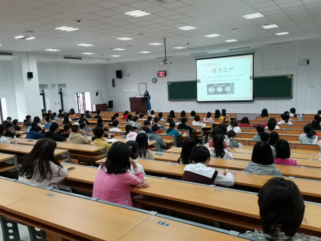 陈悦教授首先提到礼仪的精髓在于尊重,正是因为人与人之间的相互重视和关爱,礼仪框架才得以构建。在大学学习生活中,唯有相互尊重、大方得体的礼仪氛围才能帮助我们营造出更好的学习生活环境。接下来,陈悦教授又立足传统文化,讲述了“礼仪”二字的由来,以及我国自古以来行稳致远的优秀礼仪风范。陈悦教授特别指出,礼仪并不是刻板地遵守规矩,而应发自肺腑的表达对他人的重视。在讲座中,陈悦教授将中国传统礼仪与现代西方礼节相融合,向同学们展现了中西并蓄的时代礼仪要求。同时,陈悦教授紧密结合大学生日常学习生活实际,通过宿舍、课堂、尊师、社交等具体场景,将礼仪的概念具象化,帮助同学们更好的理解和践行。最后,陈悦教授希望同学们成长为有修养、有品位、有风度、有气质、懂得爱己爱人的新时代大学生。