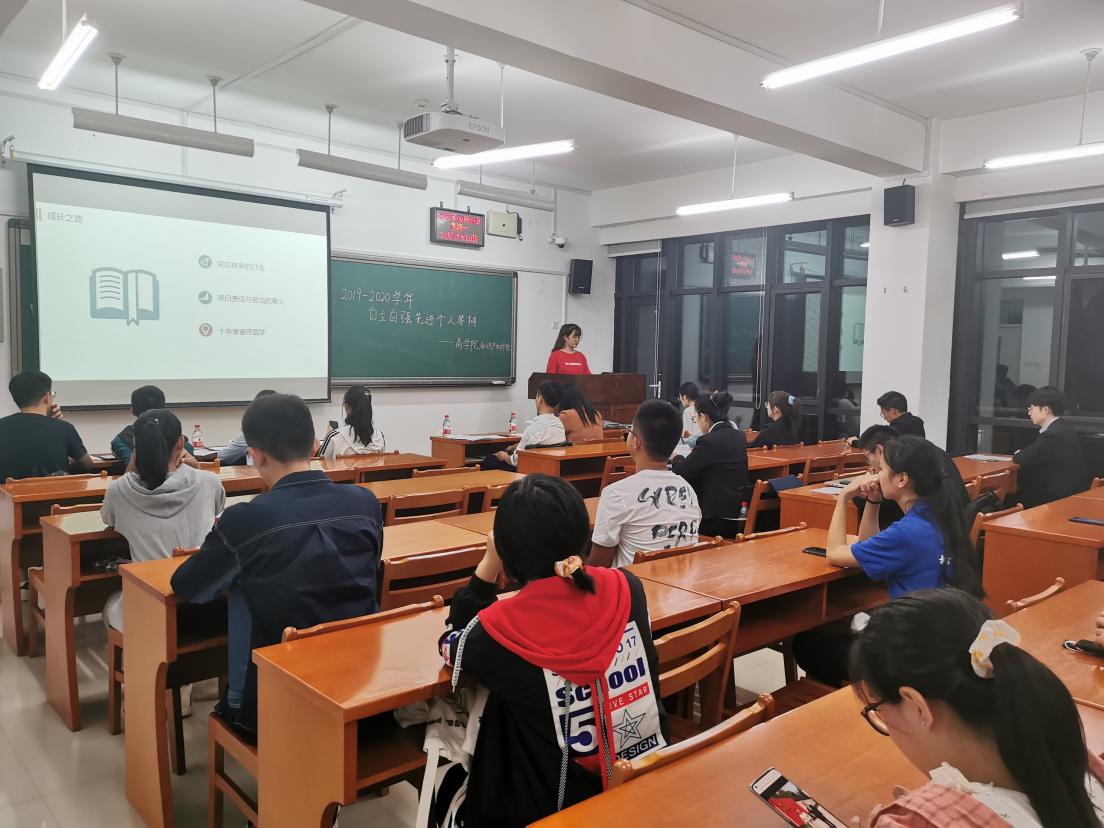 “天行健,君子以自强不息”,为充分发扬自立自强精神,发挥榜样模范作用,9月28日晚,商学院、知识产权学院在A01-S601教室举办2019-2020学年“自立自强先进个人”评选活动。商学院、知识产权学院辅导员肖启、晁苗苗、齐心愉和莱斯特国际学院辅导员董睿出席本次评选活动,并与4名学生代表共同担任本次答辩评委。