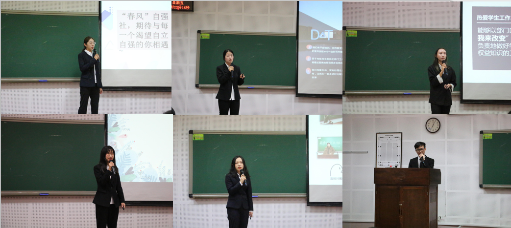 接下来,12个部门的负责人依次登台宣讲,各部门宣讲人就部门成员、工作职能、活动开展等方面进行了精彩讲解,并对新生发出诚挚邀请。通过本次宣讲会,2020级新生对学院各个学生组织、各个部门有了更加充分直观的认识和了解。宣讲会结束后,许多2020级新生在现场填写并提交了报名表。