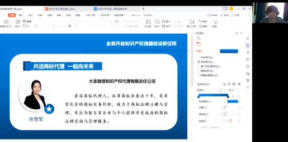 2022年4月20日,值此全国知识产权宣传周(4月20日—26日)开启之日,知识产权学院开展了以“知识产权强国与知识产权青年”为主题的系列讲座。结合“知识产权代理业务实践”课程设置了“知识产权及其职业发展”(中国知识产权远程教育平台)及“共话商标代理 一起向未来”两次讲座。讲座由国家知识产权培训(辽宁)基地(下称“基地”)张丽霞主持、基地副主任兼知识产权学院院长助理(国家知识产权局挂职干部)张磊致辞,学院50余名同学参加。