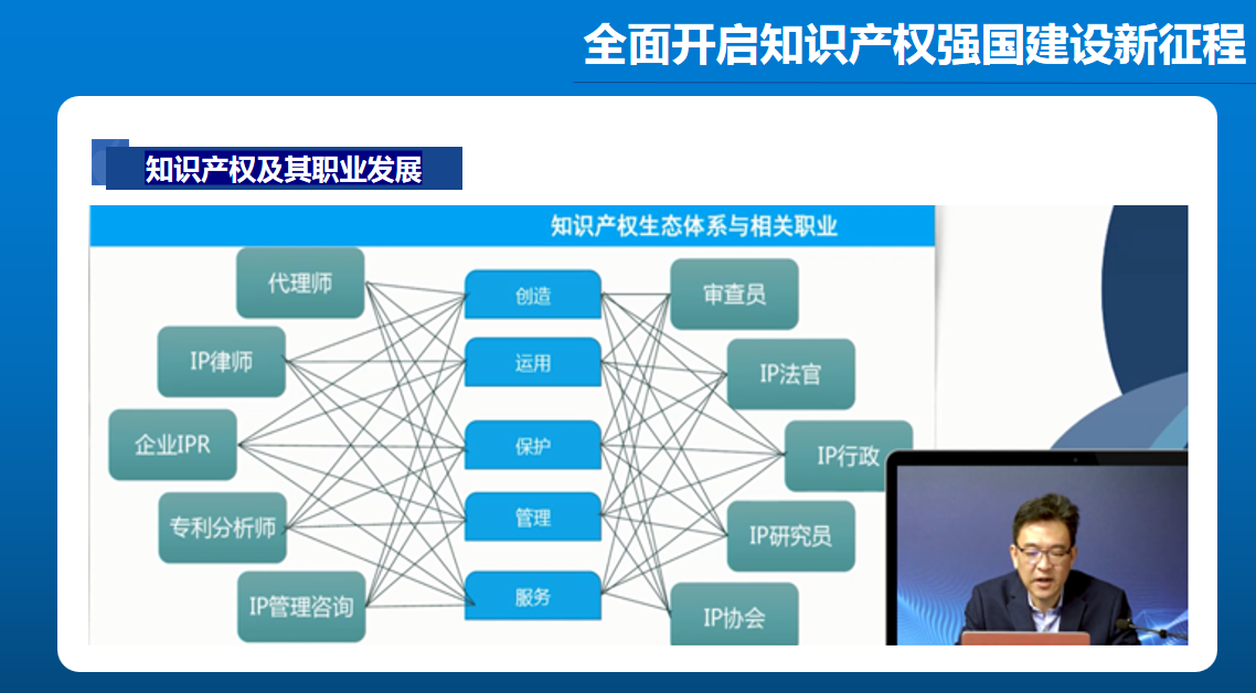 盈利律师事务所资深顾问、数据合规研究院院长赵军概要介绍了中国当前知识产权面临的国内外形势,清晰梳理出知识产权生态体系与相关职业,阐述了研发工作与知识产权的关系,切实帮助同学们了解和掌握从事各职业的专业储备和基本要求。