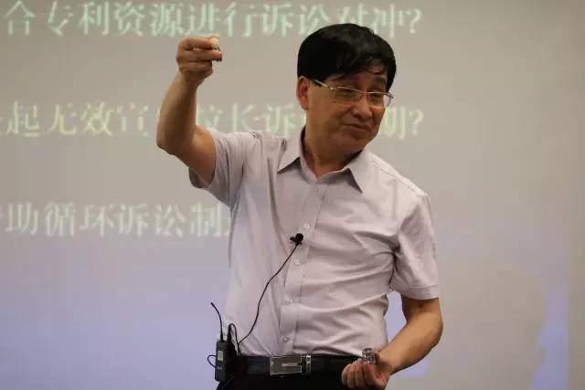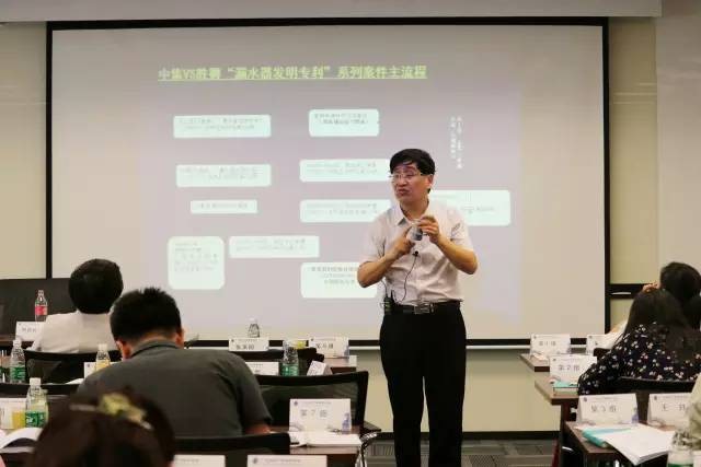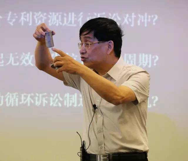 (陶教授在课堂上通过实物展示向学员们讲解案例中的专利技术)