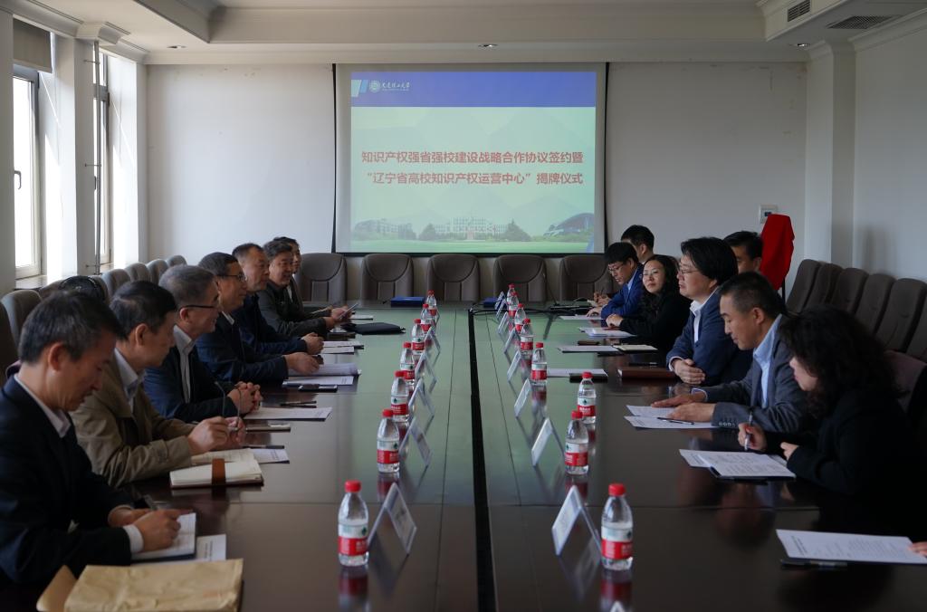 技术研究开发院、国家知识产权战略实施(大连理工大学)研究基地、国家知识产权培训(辽宁)基地相关负责人分别汇报学校知识产权工作和两个基地情况,与会人员就知识产权强省、强市和强校战略的深入实施进行研讨。