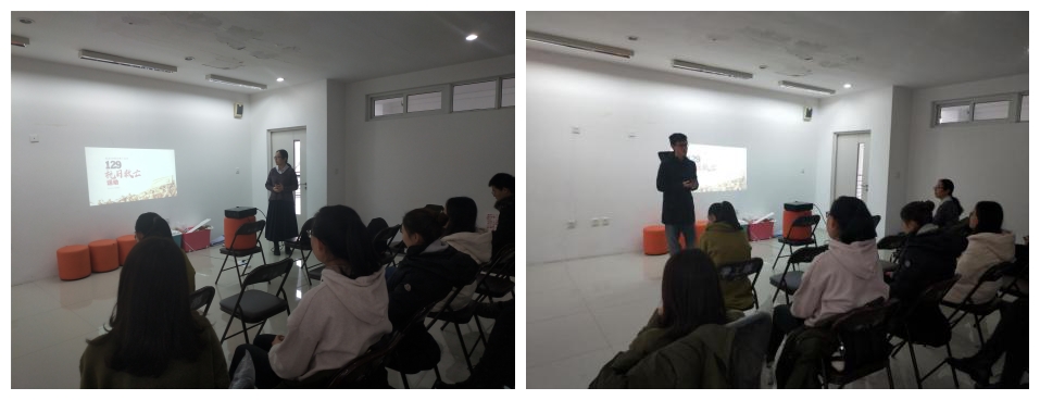 知产1701团支部于12月19日晚18:00由团支书陈童洁同学主讲团课。她以学校每年举办的纪念“一二九”环校长跑活动为切入点,讲述了“一二九运动”爆发的历史原因、过程经历以及历史影响。随后,陈童洁为大家播放了许吉如的演讲《少年强则国强》,同学们认真观看并积极发表感言。其中,王秋菊同学和王琪同学的发言使同学们进一步思考自己所承担的时代责任,鼓舞同学们承担起历史使命,为祖国的美好明天而努力奋斗。