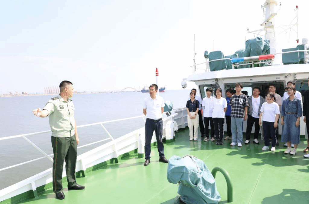 仪式开始之前,学院师生党员到达盘锦港,在黄金艇艇长张金家的带领下,参观黄金艇内部分区,包括黄金艇机舱控制台、船员休息区、会议室,以及舰桥甲板及前甲板布局陈设等。