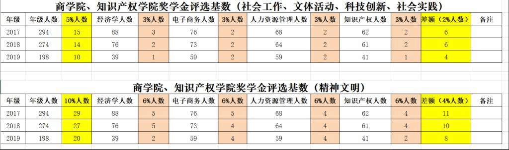 2、依据今年奖学金评审规则,下图为各单项奖学金评审基数,其中“差额”为年级剩余学生通评获奖人数。