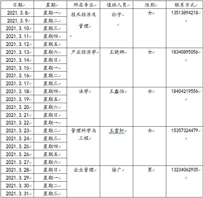 为了规范研究生日常管理,营造良好的学习环境和学术氛围,根据《商学院、知识产权学院研究生工作室管理办法》,现将2021年3月学院研究生工作室值班安排如下: