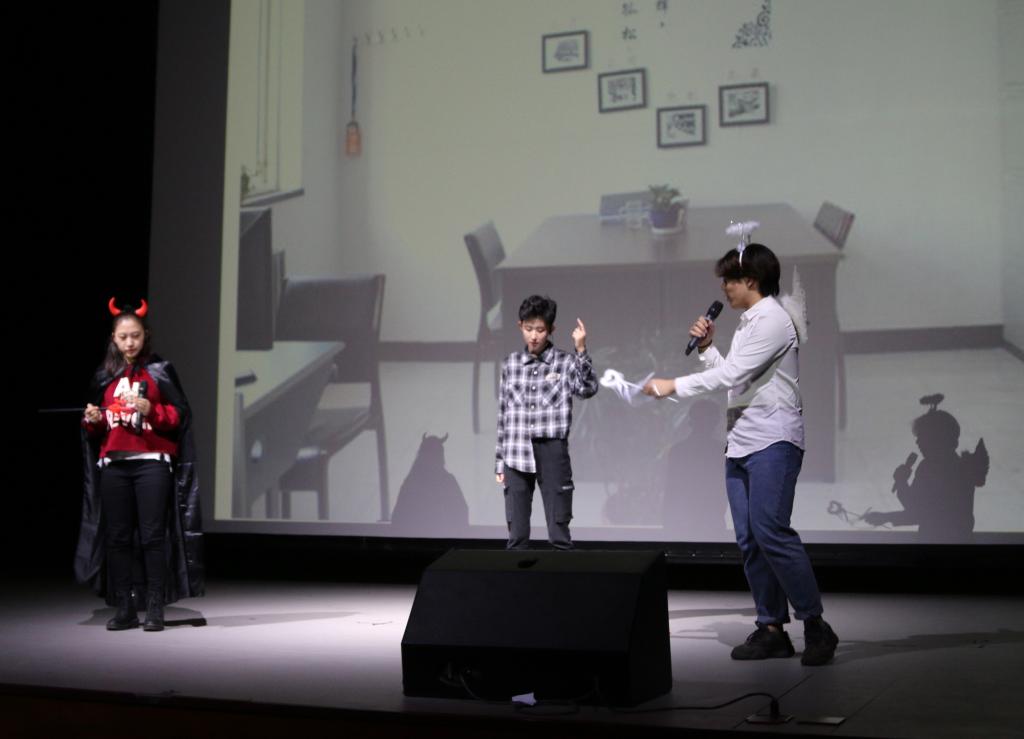 为营造积极向上的校园文化氛围,将心理育人与舞台剧相结合,引导大学生在自我认知与自我体验中养成积极心理品质和行为习惯,提高大学生心理互助和自助能力,促进大学生健康成长与全面发展,10月27号下午14:00,由知识产权学院和商学院联合主办的“心灵交响,青春梦想”校园心理剧大赛初赛在E03大礼堂拉开帷幕。知识产权学院辅导员王常有、商学院18级辅导员肖启、商学院19级辅导员晁苗苗、莱斯特国际学院19级辅导员董睿担任此次大赛评委。