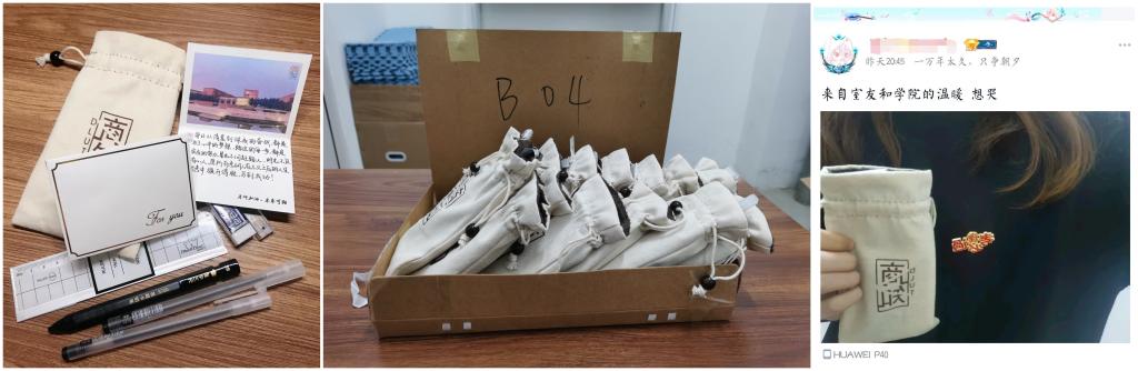 加油福袋送温暖。“江南无所有,柳赠一枝春”。在考研即将到来之际,学院特别暖心地为考研学子准备了考研加油福袋,送去冬日的一份温暖。福袋里装有铅笔、黑笔、直尺等备考文具以及学弟学妹们亲笔书写的祝福贺卡,是一份特殊而值得纪念的礼物。小小的福袋中凝聚的是无限的祝福,学院团委工作人员认真完成福袋装包并将福袋送至每位考研学子手中,多位考研同学发布说说表达内心的感动和对学院的感激。
