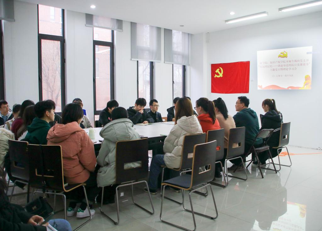 “学习英雄精神,不忘初心使命”,继红色家书诵读大赛、抗美援朝红色观影活动后,商学院、知识产权学院本师生纵向党支部于11月18日下午14:00在C03-104-1会议室举办了“永远的记忆——讲述身边的抗日英雄故事”主题党日暨理论学习会,支部全体师生党员、发展对象参加学习。