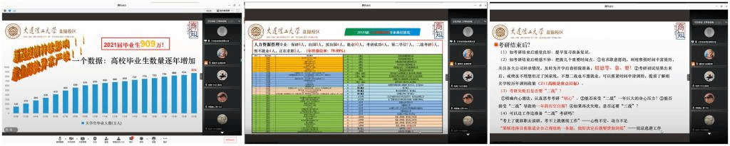 会议伊始,王常有老师通过数据图表向2017级学生及家长介绍了当前日益增长的高校毕业生人数,以及新冠肺炎疫情给毕业生落位工作带来的长期影响和不确定性,强调了2017级暨2021届毕业生就业形势的严峻性和复杂性。然后,王常有老师依次介绍了学院电子商务、经济学、人力资源管理、知识产权四个专业2016级暨2020届毕业生的年终落位情况,帮助2017级学生及家长进一步明晰毕业后的落位方向,同时通报了目前学院2017级学生的实时落位情况。接下来,王常有老师从考研、考公、就业三个方面展开重点讲解,针对如“考研失败后是否要二战”、“是否可以边工作边考研”、“春招是否还有好工作”、“错过国考和选调生是否还有考公机会”等热点问题进行详细解读,引导2017级学生结合自身情况,实事求是,做出适合自己的选择。最后,王常有老师面向2017级学生及家长重点解读了第二学位相关政策,弥补了很多2017级学生及家长对该政策的知识空白,同时也为2017级考研学生提供了另外一条可供选择的道路。