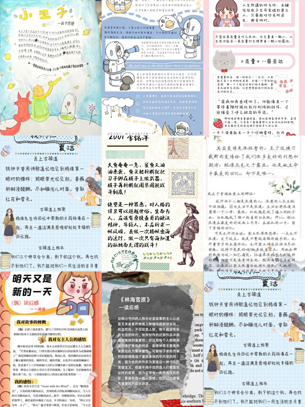 本次活动过程中,各团支部积极响应学院团委号召,认真组织开展各类班级读书活动,活动形式多样、参与度高,包括撰写读后感、经典朗读、制作手账等。本次活动共有11个班级参加,累计上交读后感352份、经典诵读视频70份、精美手账105份。同时,学院同学在活动期间自发举办线上读书分享会,共同品味书中精髓,分享读后感悟,让思想在交流中碰撞。