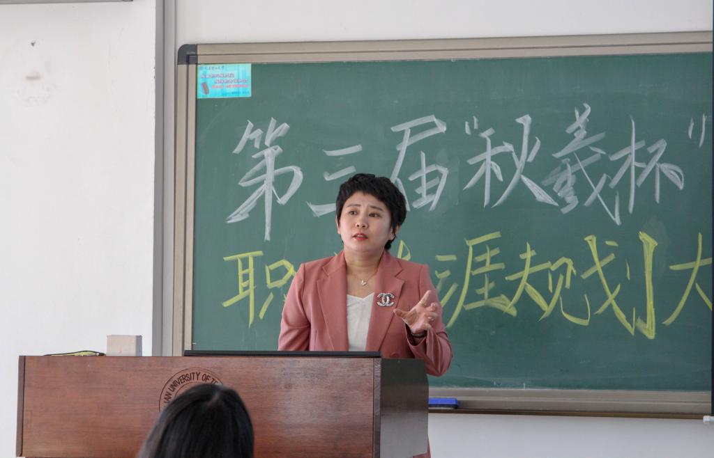 为了进一步提升学院学生职业生涯规划的意识和能力,商学院、知识产权学院于10月27日下午13:30在A01-S301教室举办第三届“秋羲杯”职业生涯规划大赛决赛。经过前期职业生涯规划书审核、选拔,共有10位同学进入最终决赛。本次决赛特邀中信证券大连五五路营业部副总经理梁爽、区域总监赵涛歌、外国语学院盘锦分院学生工作办公室主任邹靓靓和学院学生工作办公室全体辅导员老师以及15位学生代表共同担任评委。