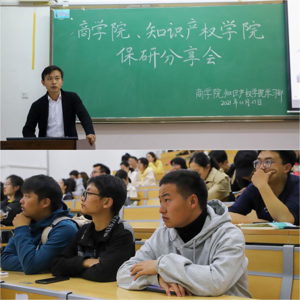 为进一步帮助商知学子深入了解保研具体流程,解答同学们关于保研的困惑,做好未来规划,营造积极向上的学风氛围,商学院、知识产权学院于10月27日晚18:00在A01-N105教室举办保研经验分享会。本次分享会特邀六名优秀的2018级保研学长学姐讲述保研经历、分享保研经验、传授保研心得。