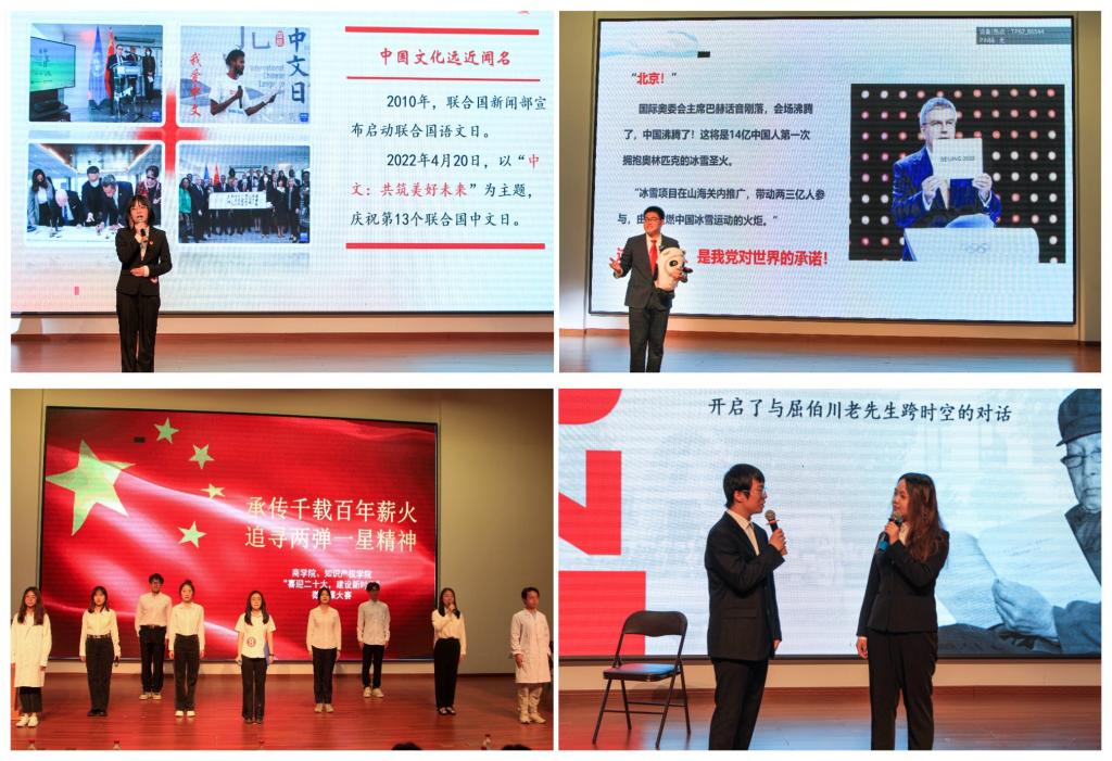 经过初赛和复赛的激烈角逐,共有十支队伍脱颖而出入围决赛,他们在40多天的备赛时间里认真查阅党史资料,仔细斟酌润色语言,不断打磨微课作品,力争为学院师生带来一场精彩的红色学习之旅。从冰雪冬奥到天下大同,从脱贫攻坚到两弹一星,从载人航天到为国深潜,十支决赛队伍借助情景小剧场、视频连线访谈等形式从不同角度阐述了他们对中国共产党、对革命前辈的高度认同和赞颂,生动诠释了作为新时代青年的责任和担当。