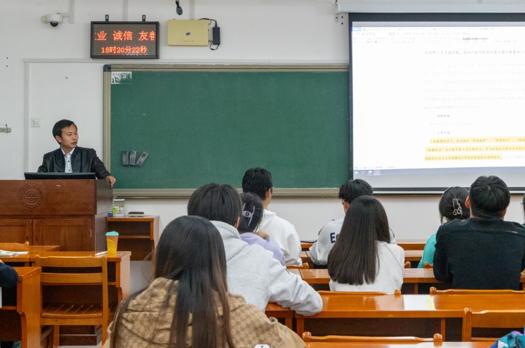 会议首先由学院团委书记团成员李开银同学讲解2023-2024学年“三会两制一课”和团建指导员制度的工作重点,强调各基层团支部在工作开展过程中要明确相关要求、注重流程规范、认真做好工作记录,积极推动“三会两制一课”和团建指导员制度发挥功效。